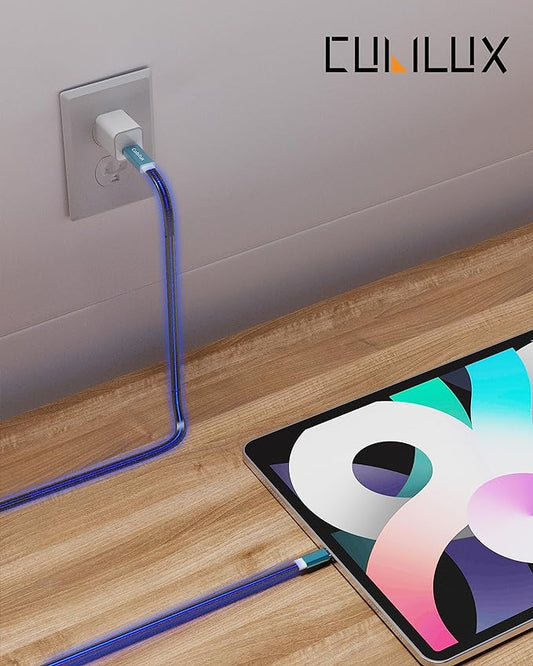 Glowing Lightning & Micro USB Charging Cable-Red,2FT