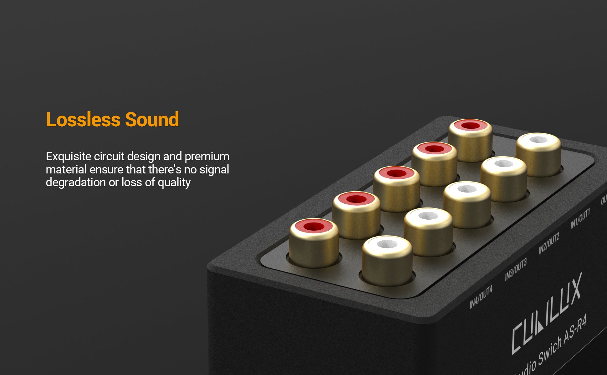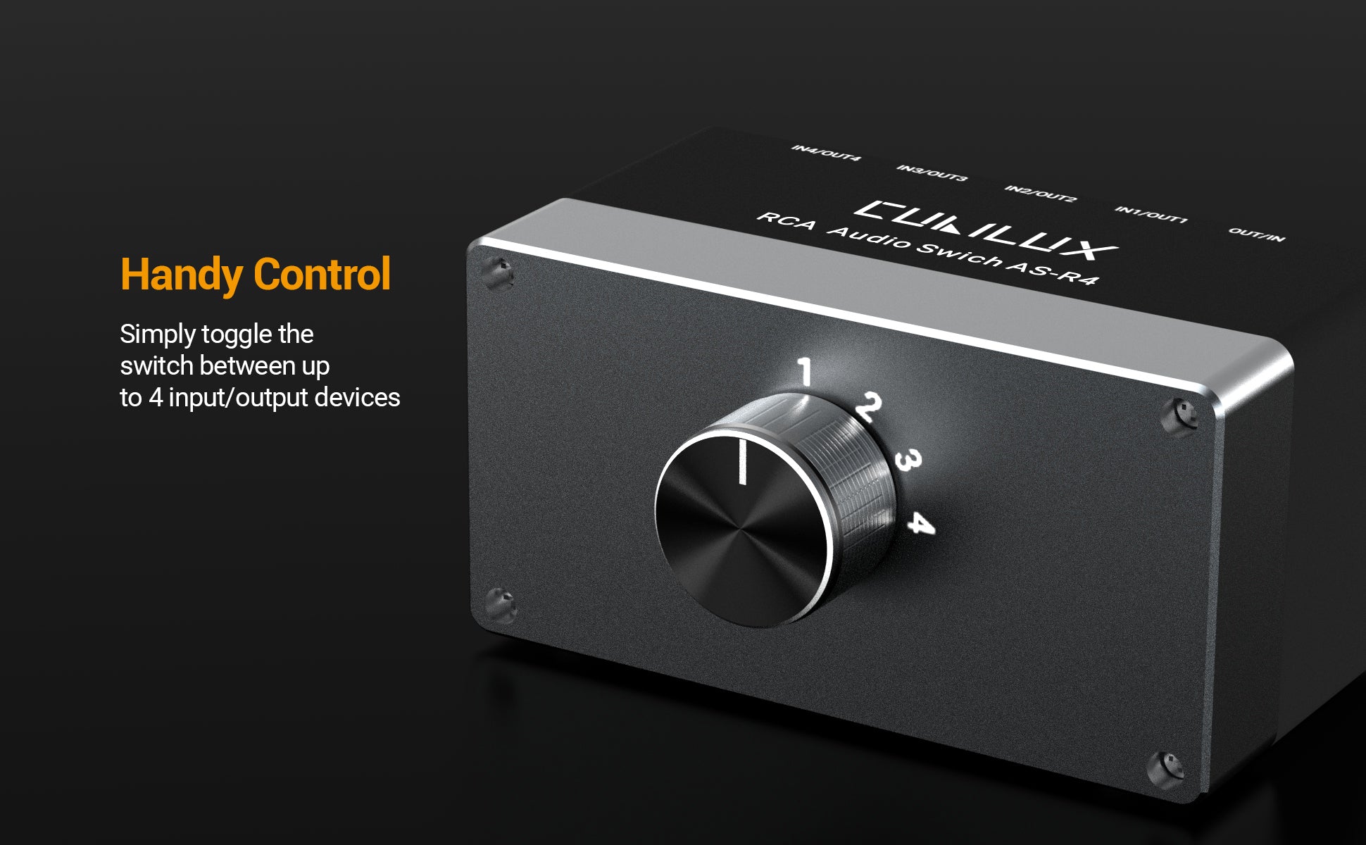- [Bidirectional RCA Switcher] – Cubilux Passive RCA Audio Selector allows you to switch between up to 4 output devices on a single input source or select between 4 input sources to 1 output device.