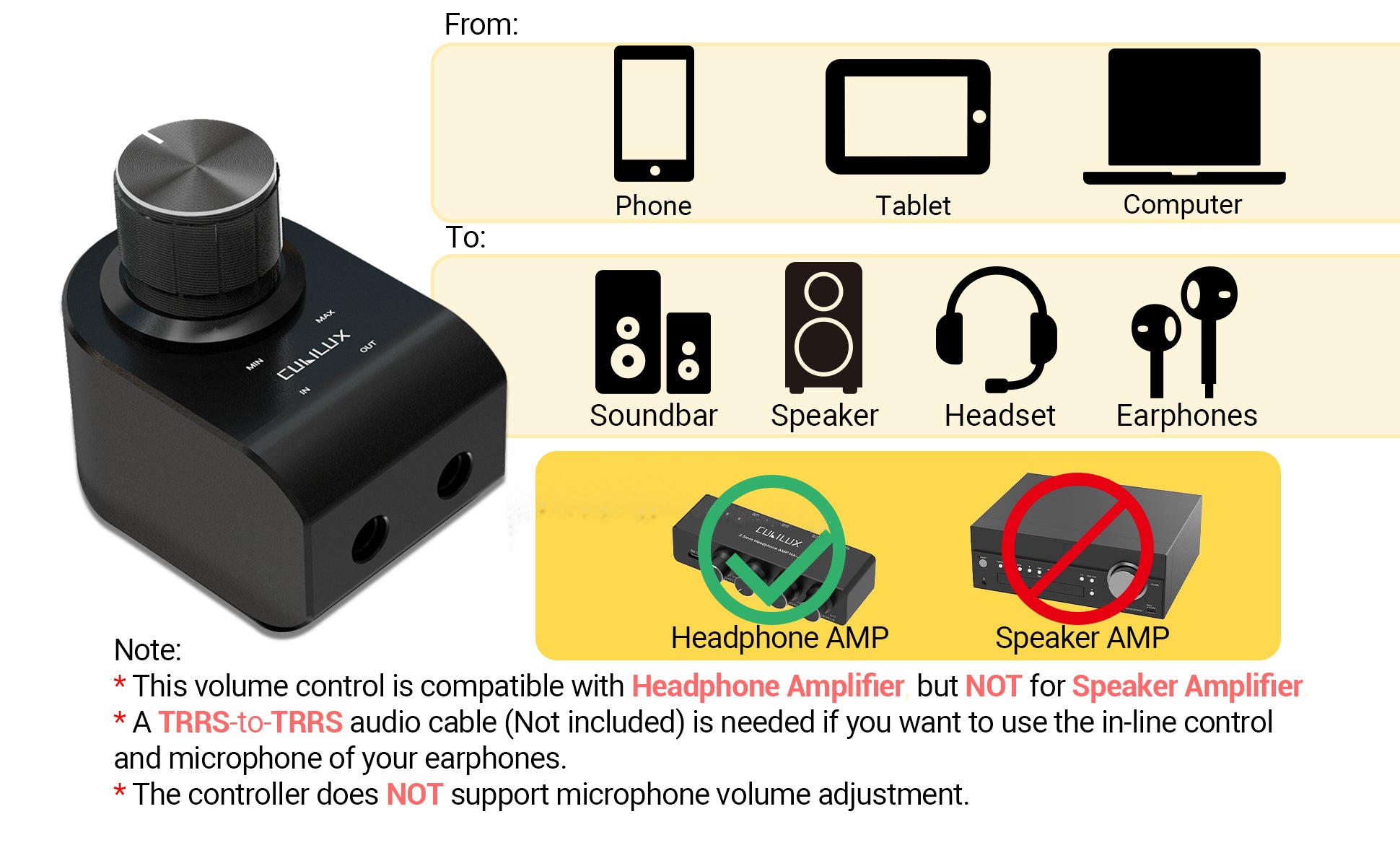 - This volume control is compatible with Headphone Amplifier, but NOT for Speaker Amplifier.