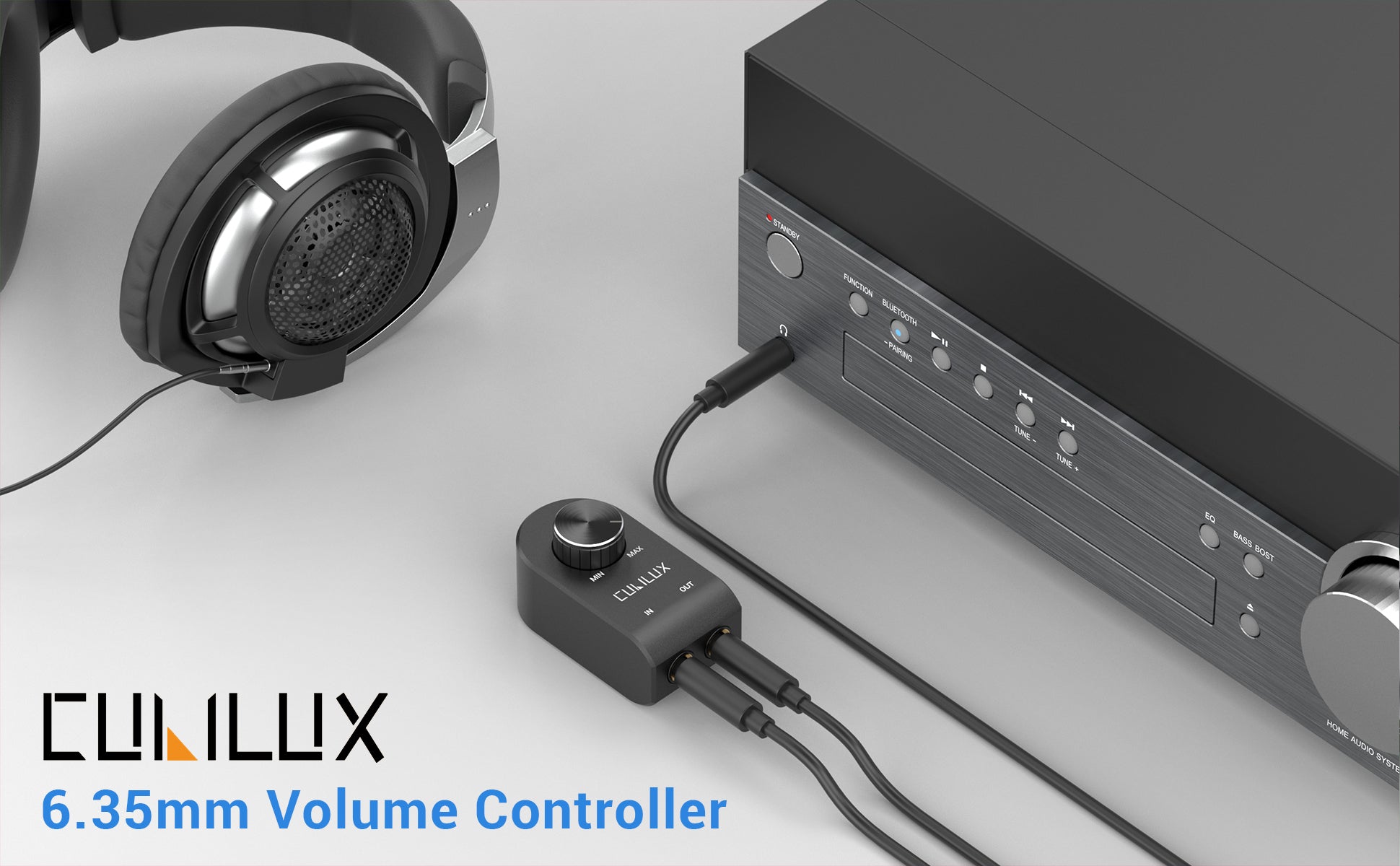 Cubilux 6.35mm Analog Volume Controller is designed to provide exceptional sound clarity while offering convenient volume adjustment capabilities. By adjusting the volume, the user can avoid hearing damage, noise complaints, or audio distortion. Volume controllers can also have other functions, such as muting, balancing, equalizing, or enhancing the sound quality.Ideal for headphones, speakers, studio monitors, bass guitars and keyboards with a 6.35mm(1/4-inch) connector.