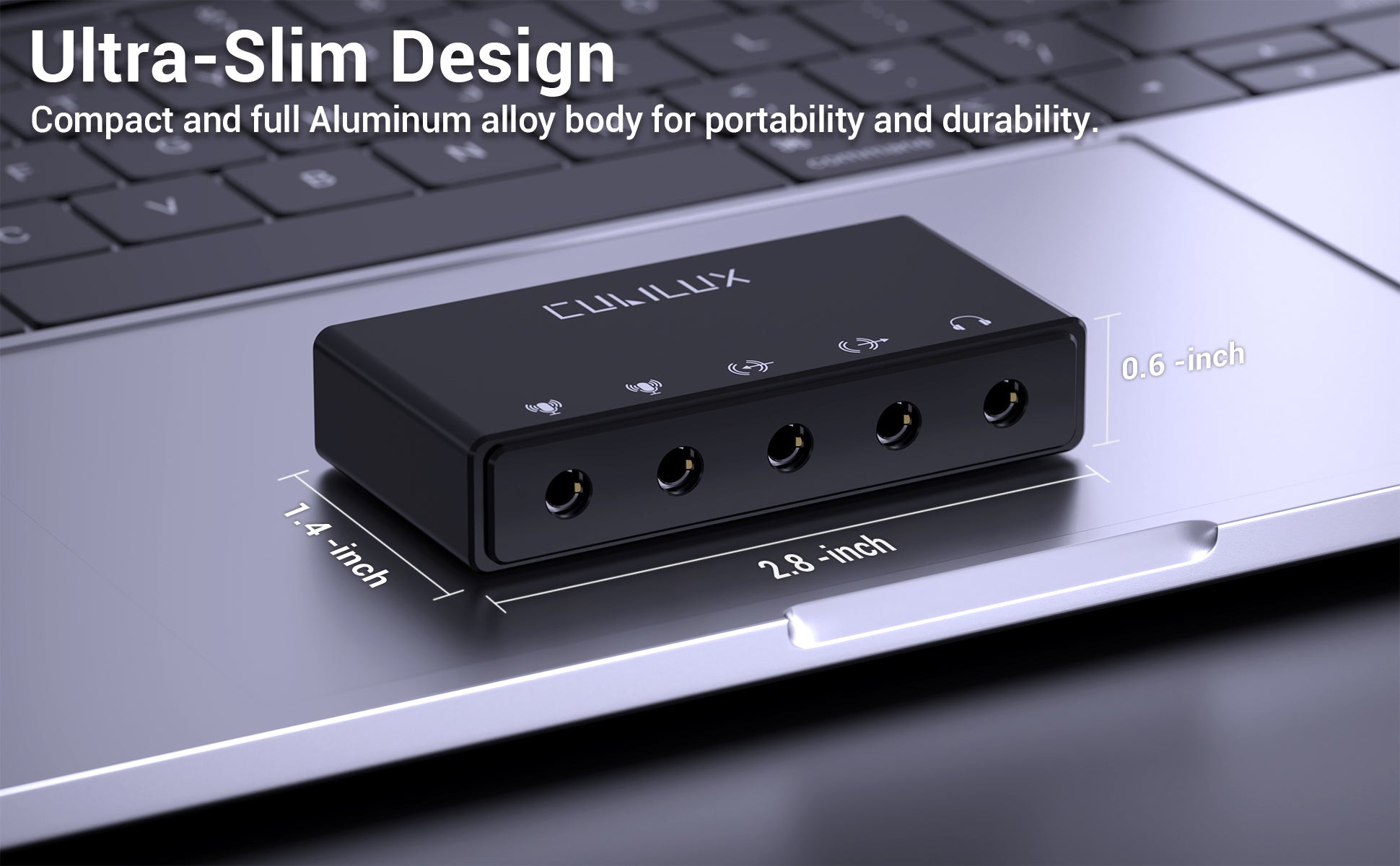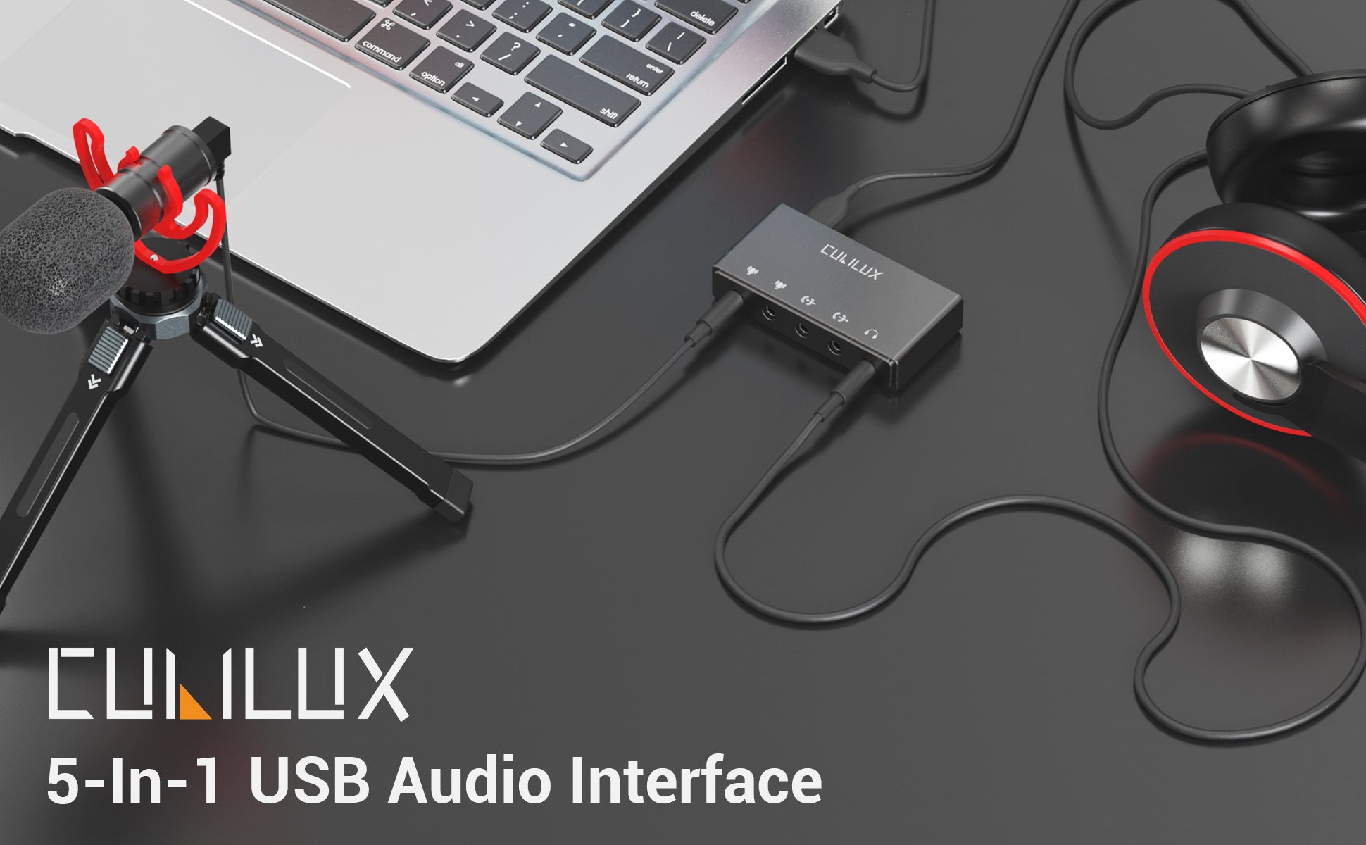 Cubilux CB5 USB to 3.5mm Audio Interface empowers musicians, podcasters, or content creators to achieve studio-quality sound without the complexity.