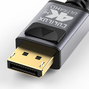 The latches on DisplayPort plug ensures firm and steady connection and prevent accidentally pulling out or getting loose. To unplug the cable, just press down the button on the latch before releasing the connector.