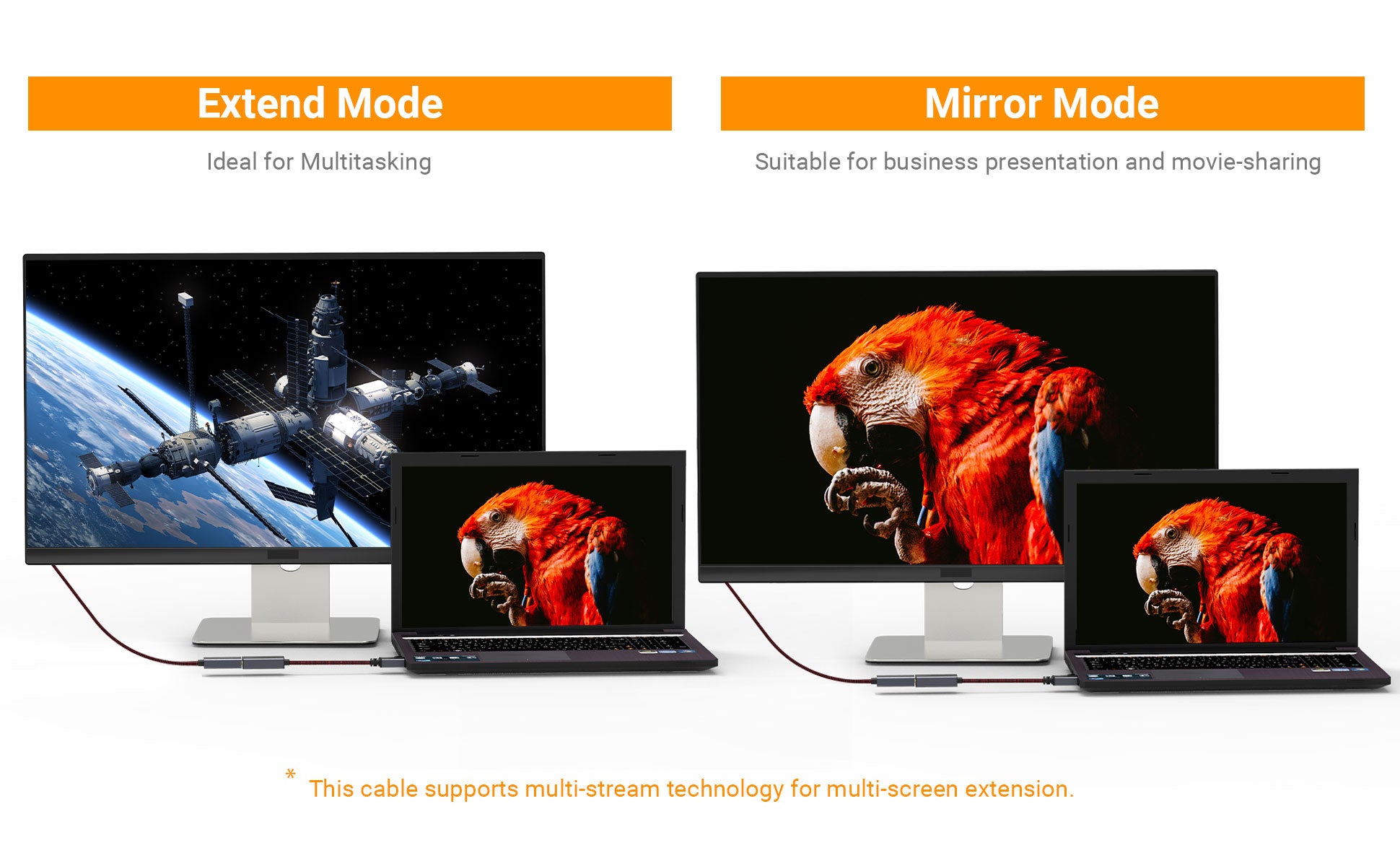 Plug and play for immersive gaming, home theatre experience and enhanced work productivity. It allows to expand multiple high-definition displays from single DisplayPort output without any compromise of refresh rates, color depth and latency.