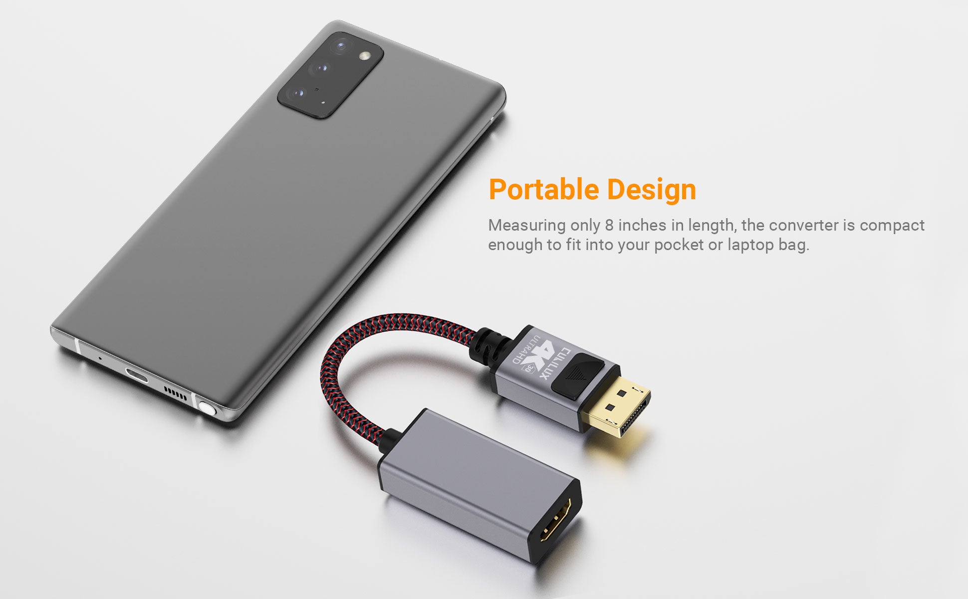 Cubilux DisplayPort Male to HDMI Female adapter allows you to easily connect the DisplayPort output on your PC, laptop, desktop computer or DisplayPort docking station to HDMI input on display, projector or HDTV. The adapter transmits Ultra high definition signal up to 4K(4096x2160) at 30Hz refresh rate and delivers uncompressed stereo sound with dense bass and crisp treble. Measuring only 8 inches in length, the converter is compact enough to fit into your pocket. Ideal for business presentation, gaming or watching movies on a bigger screen.