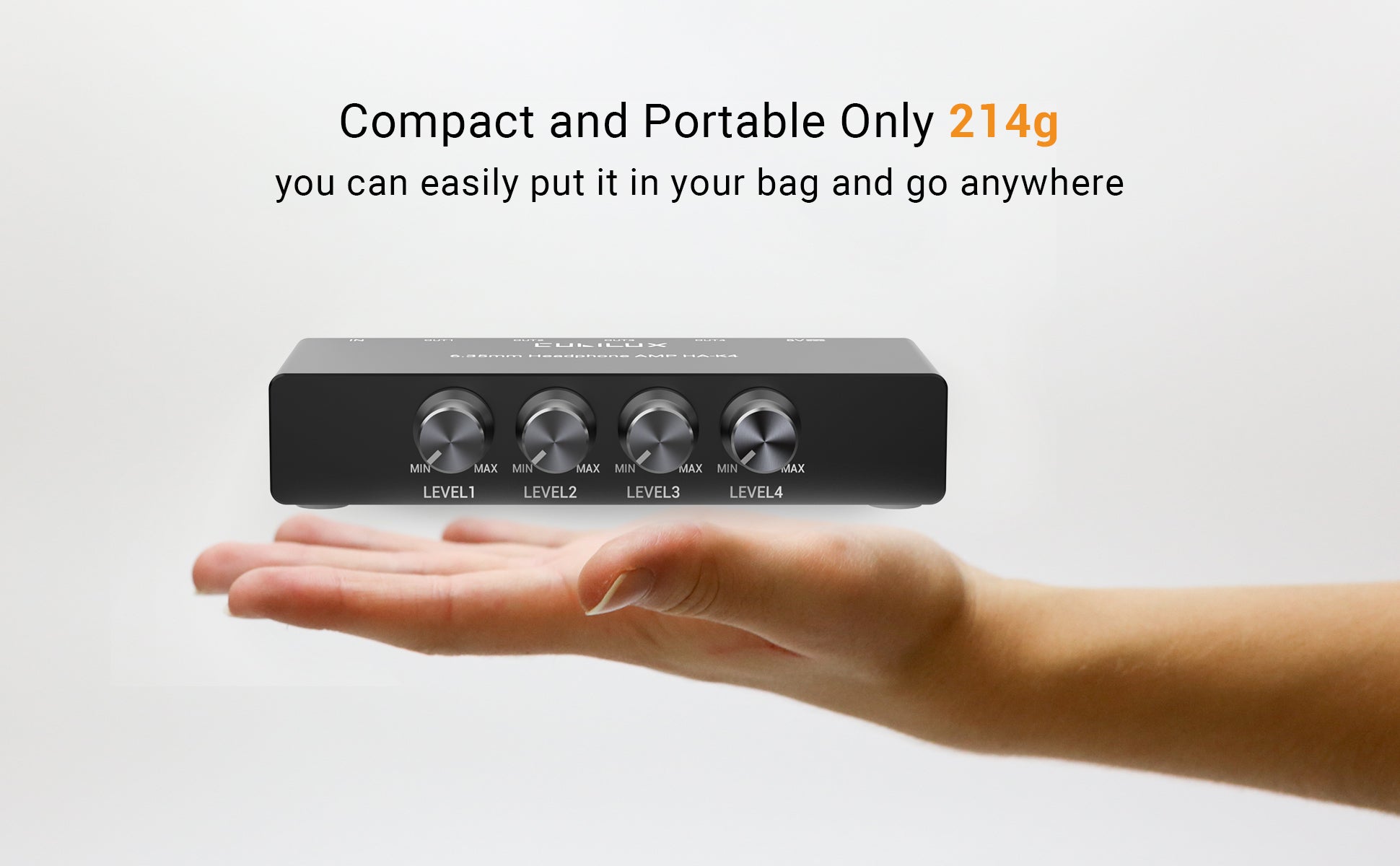 - [ 4-Channel Stereo Headphone Amplifier]-Cubilux HA-K4 headphone amplifier with independent volume control has 4 outputs to support up to 4 headphones, line-outs or loud speakers: no popping, ultra-low distortion even at maximum volume. There is no loss of volume when all 4 outputs are connected.