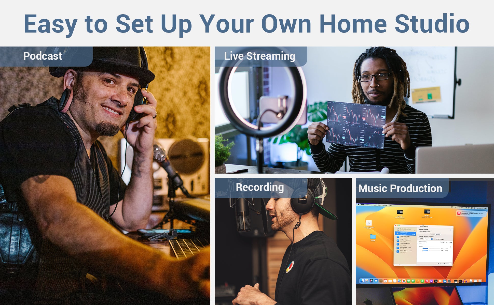 - [Versatile Connectivity] – The line-in jack allows you to record music demos from mixer or AMPs or simply connect instruments like guitars or keyboards; The MONO MIC jack supports powerless microphones; and the headphone jack enables software monitoring at ease. Whether you're recording or practicing, the Cubilux HLMS-C5 offers the flexibility you need.