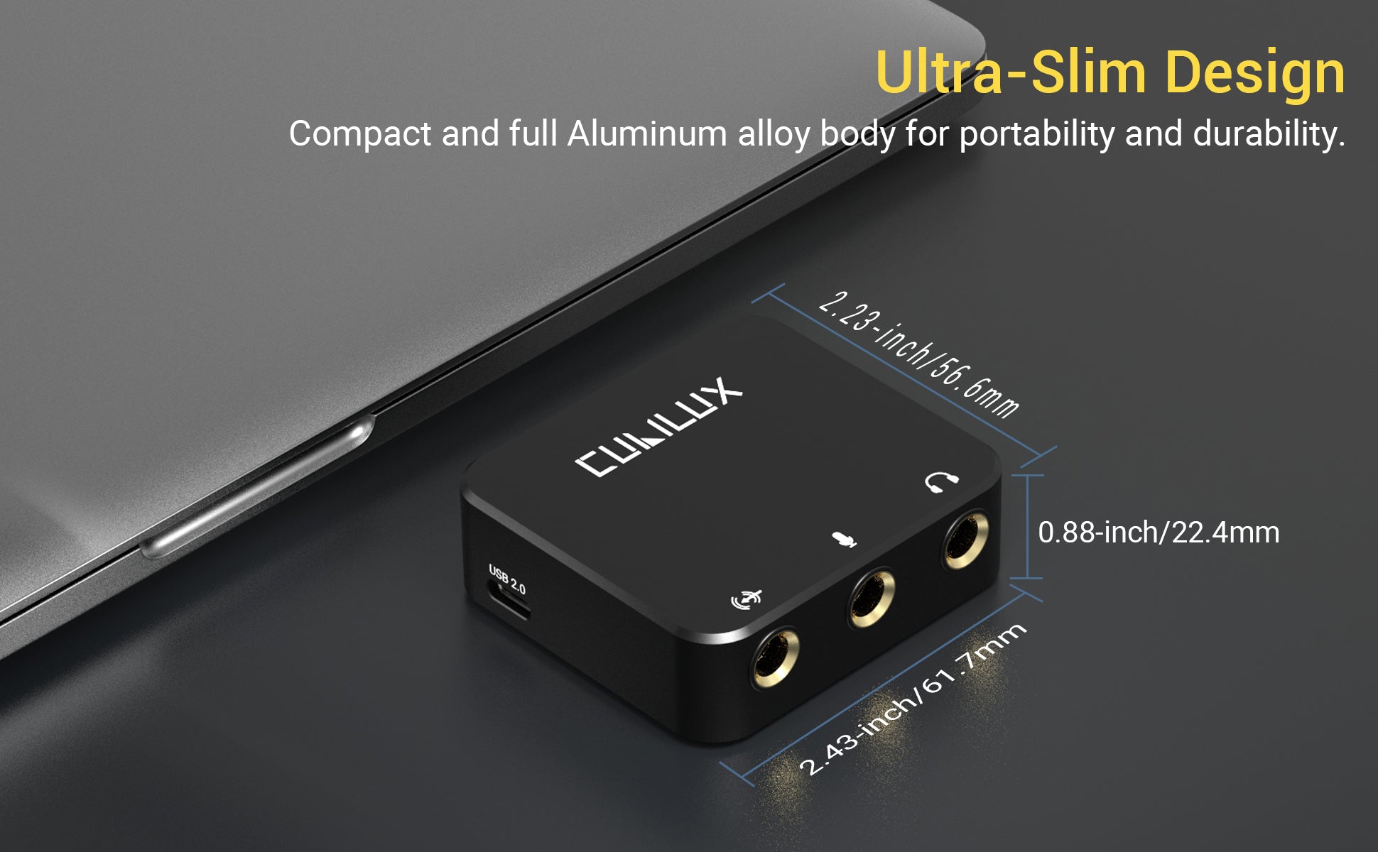 Cubilux CB5 USB to 3.5mm Audio Interface empowers musicians, podcasters, or content creators to achieve studio-quality sound without the complexity.
