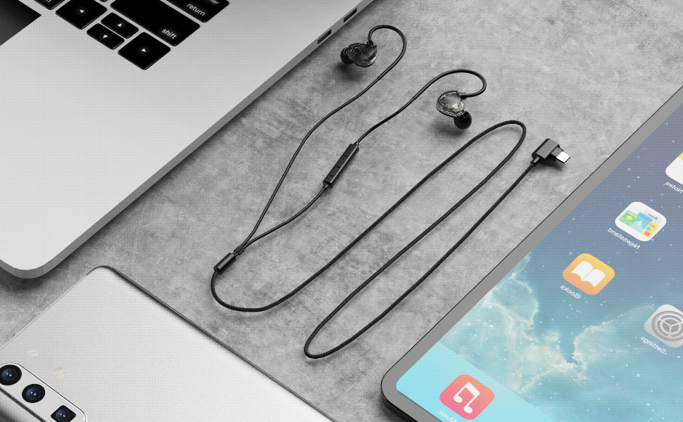 Cubilux right angle USB C Headphones are designed to provide a better experience for gaming or movies-watching on a horizontal(landscape) screen of USB C smartphones and tablets.