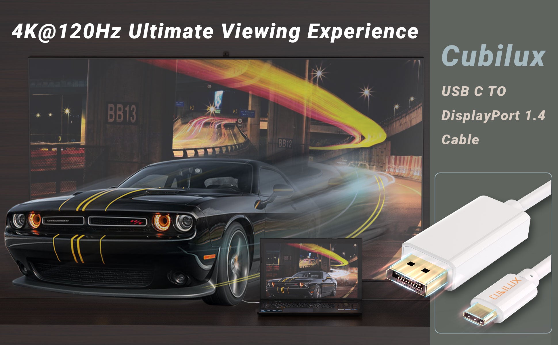 - [4K@120Hz UHD Viewing Experience] – Cubilux USB Type C to DisplayPort 1.4 Cable delivers a crisp, vivid image up to 4K(4096x2160) at 120Hz refresh rate to give you an ultimate visual experience for home theater. Please note: The maximum resolution ratio and refresh rate are depended by your device and monitor.