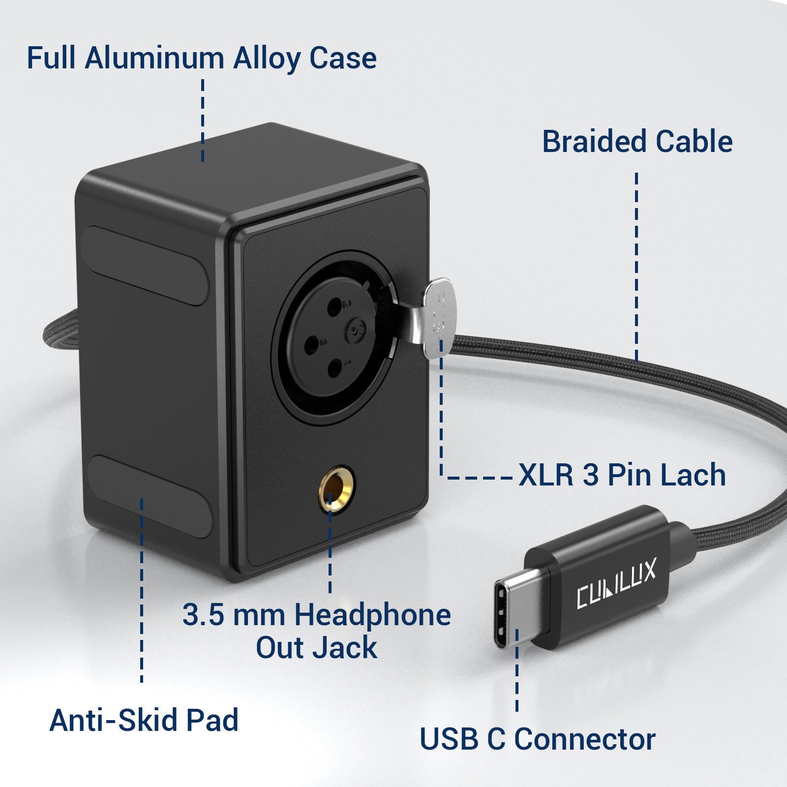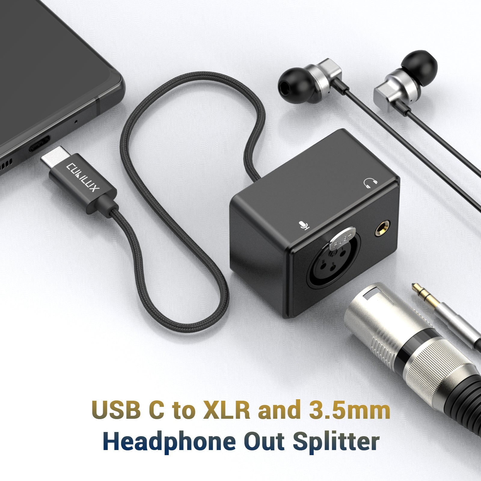 Cubilux USB C to XLR Microphone and 3.5mm Headphone Out Splitter